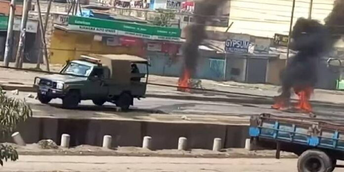 باستخدام الحجارة والنيران، أغلق الشباب الطرق داخل بلدة كيتينغيلا، مما أجبر المحال التجارية على الإغلاق خوفًا من الهجوم والنهب.